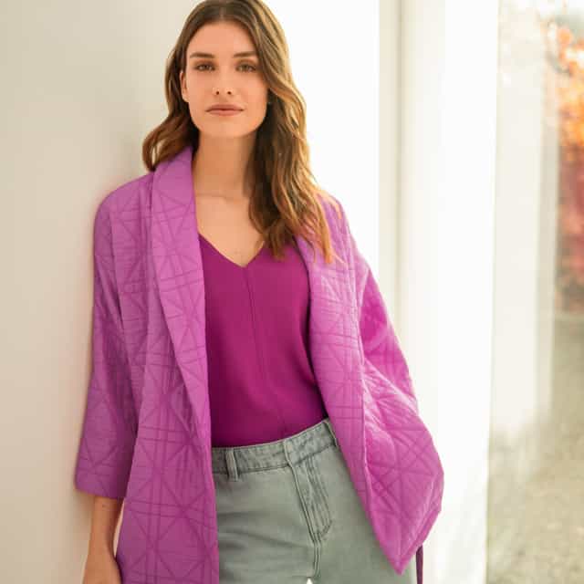 Sie führt ein zielbewusstes Leben, genießt ihre Freiheit und pflegt ihre persönlichen Ziele und Träume. Expresso übersetzt diese Lebensfreude in Kollektionen, die stilvoll, raffiniert und zugänglich sind, damit sie jeden Tag mühelos strahlt.