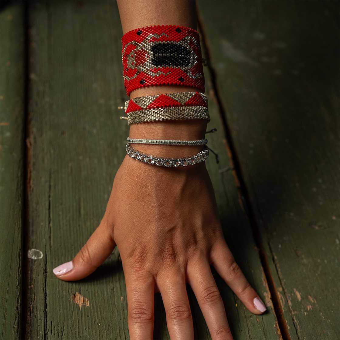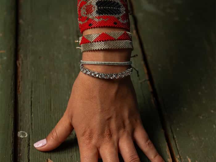 Our ARDECO jewelry designs are 100% handmade unique pieces made from only high-quality materials such as precious color stones fair traded, real silver, real gold, resistant fabric threads, cylindrically cut Miyuki glass beads, mother of pearl & jade. Our jewelry is inclusive and fits all people.