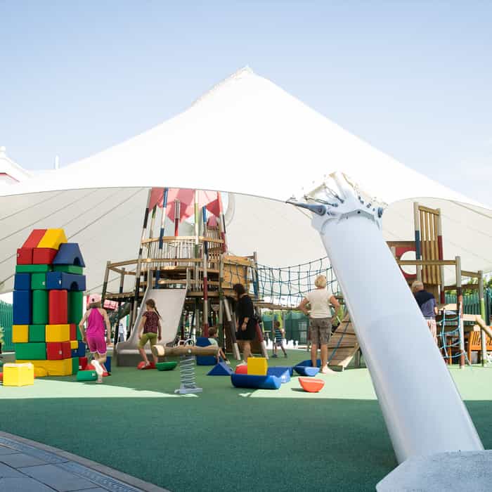 We also have two playgrounds your children will love! The small playground is next to Marché Mövenpick, the bigger one with a roof is between Frittenwerk and Giovanni L. Perfect for a delicious shopping break while the kids can play.