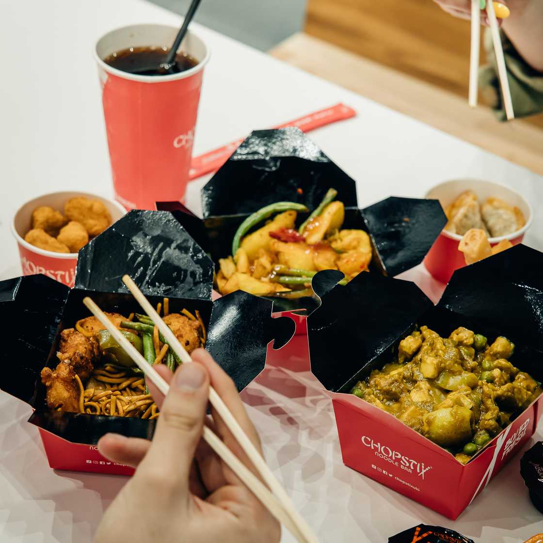 Grab a box of Big Flavour Behaviour at Chopstix Noodle Bar. Our noodles and toppings are always available in our wok inspired Bain Marie displays and with our super simple ordering we serve all our customers in under a minute!