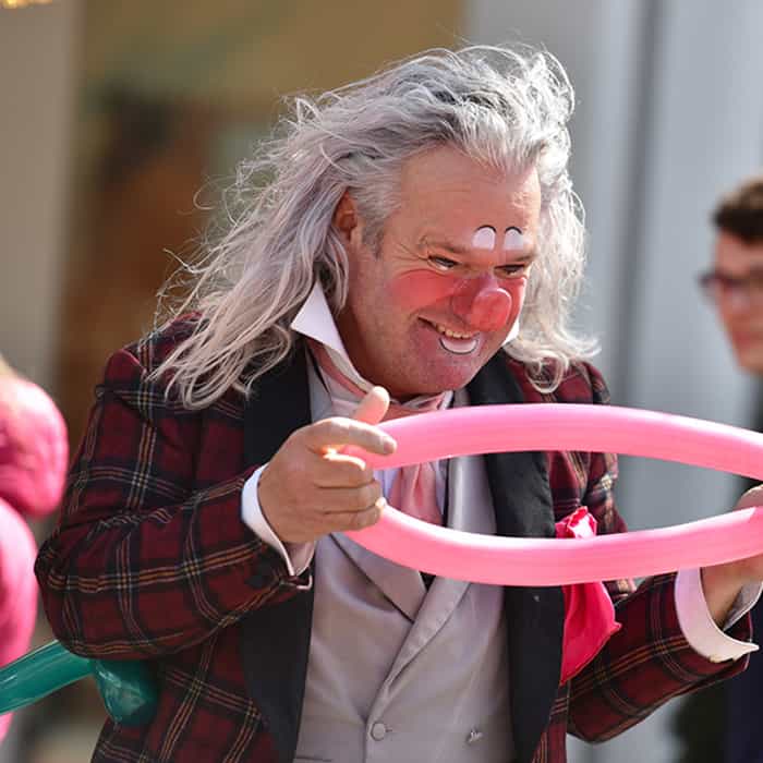 Clown Jack vermaakt families met ballonkunst, kleine trucjes en interactieve kinderanimatie en zorgt voor vrolijke momenten.